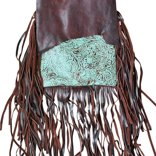 Raw Edge Embossed Turquoise Purse