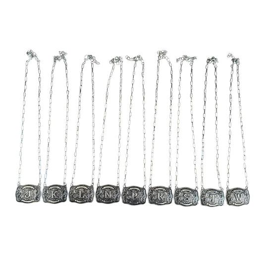 Tooled Mini Buckle Initial Necklaces