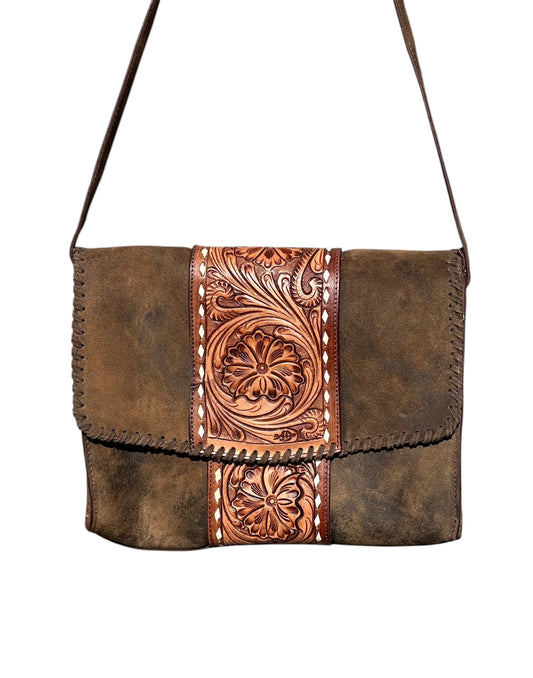 Tooled Leather Messenger Bag