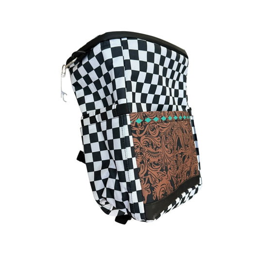 Checkered Tooled Leather Cooler Backpack