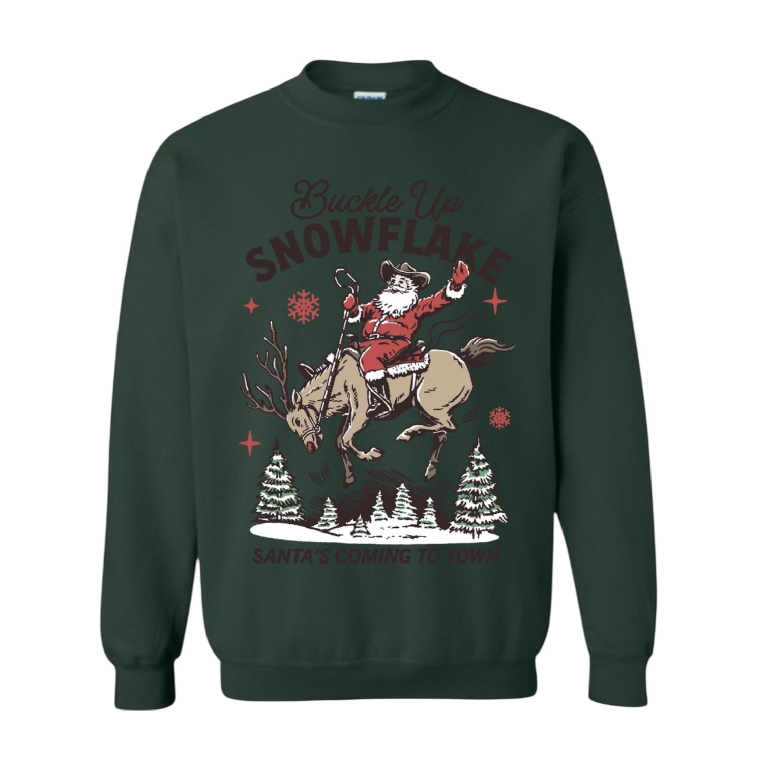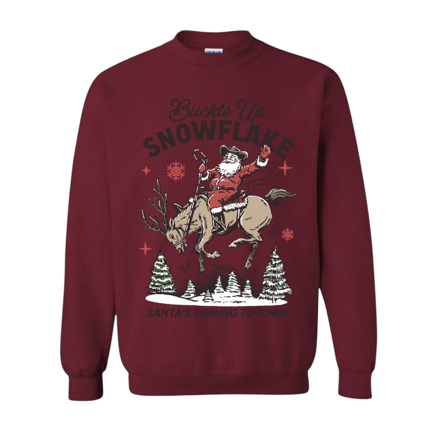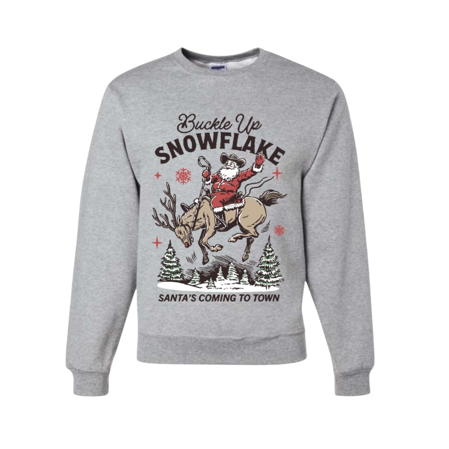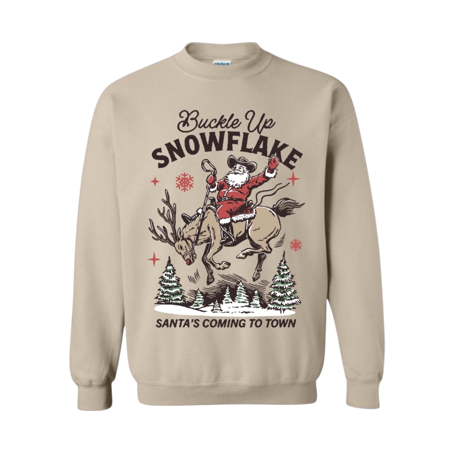 Buckle Up Snowflake Christmas Crewneck • PRE ORDER •