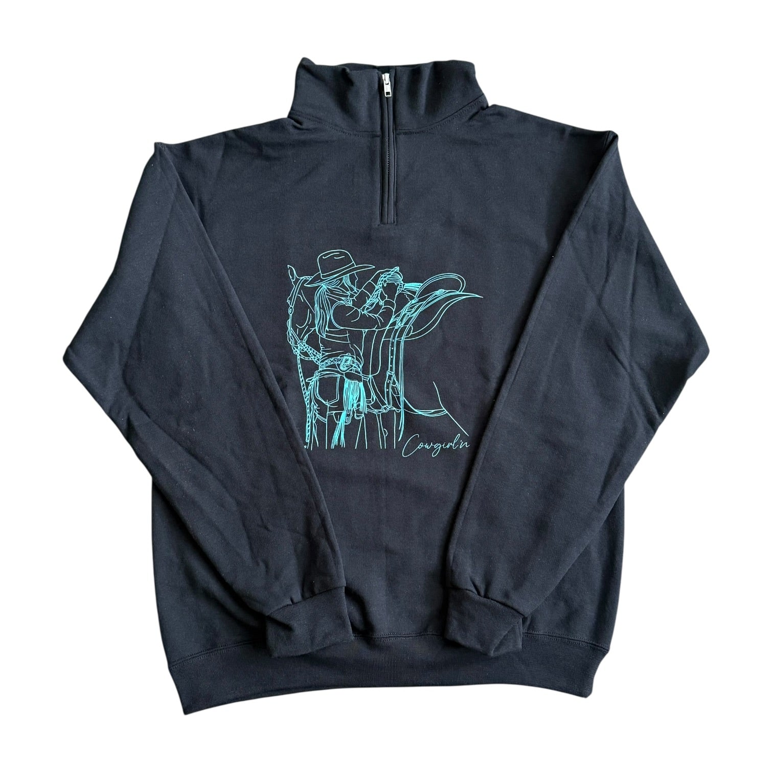Cowgirl’n Black & Turquoise 1/4 Zip Sweater