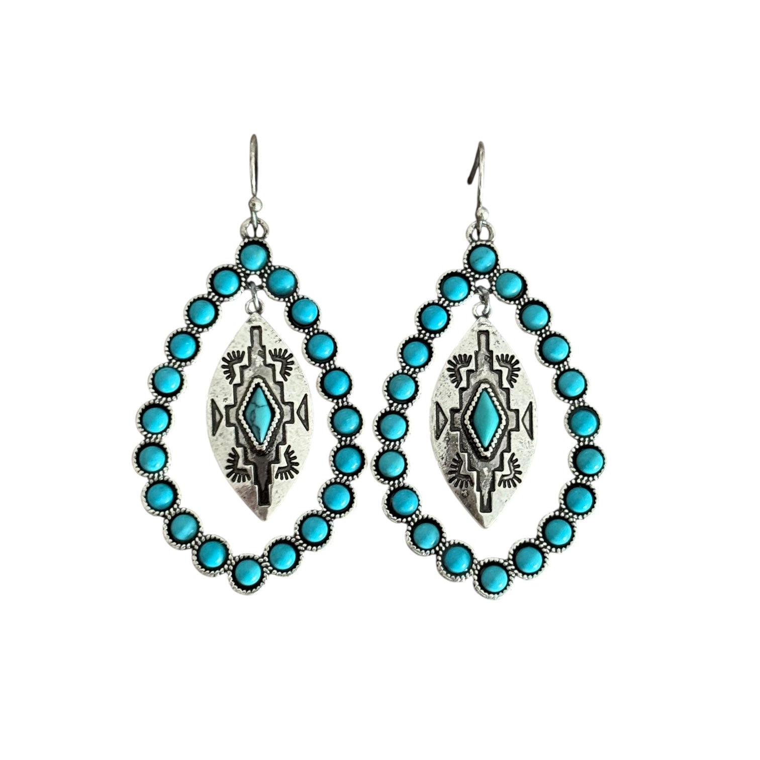 Turquoise Teardrop Aztec Earrings